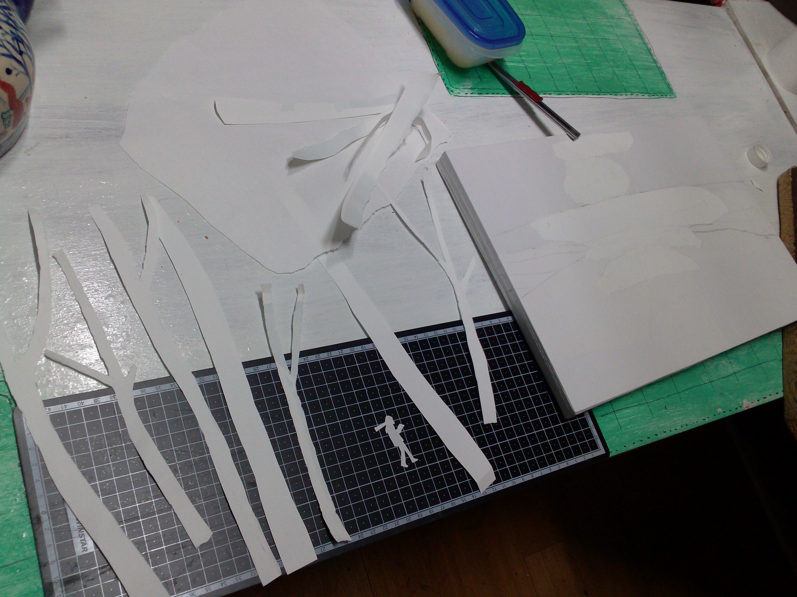 1. 기본 종이 캔버스 만들고 버리는 종이 이용해서 나무 모양으로 찢어주거나 잘라줌