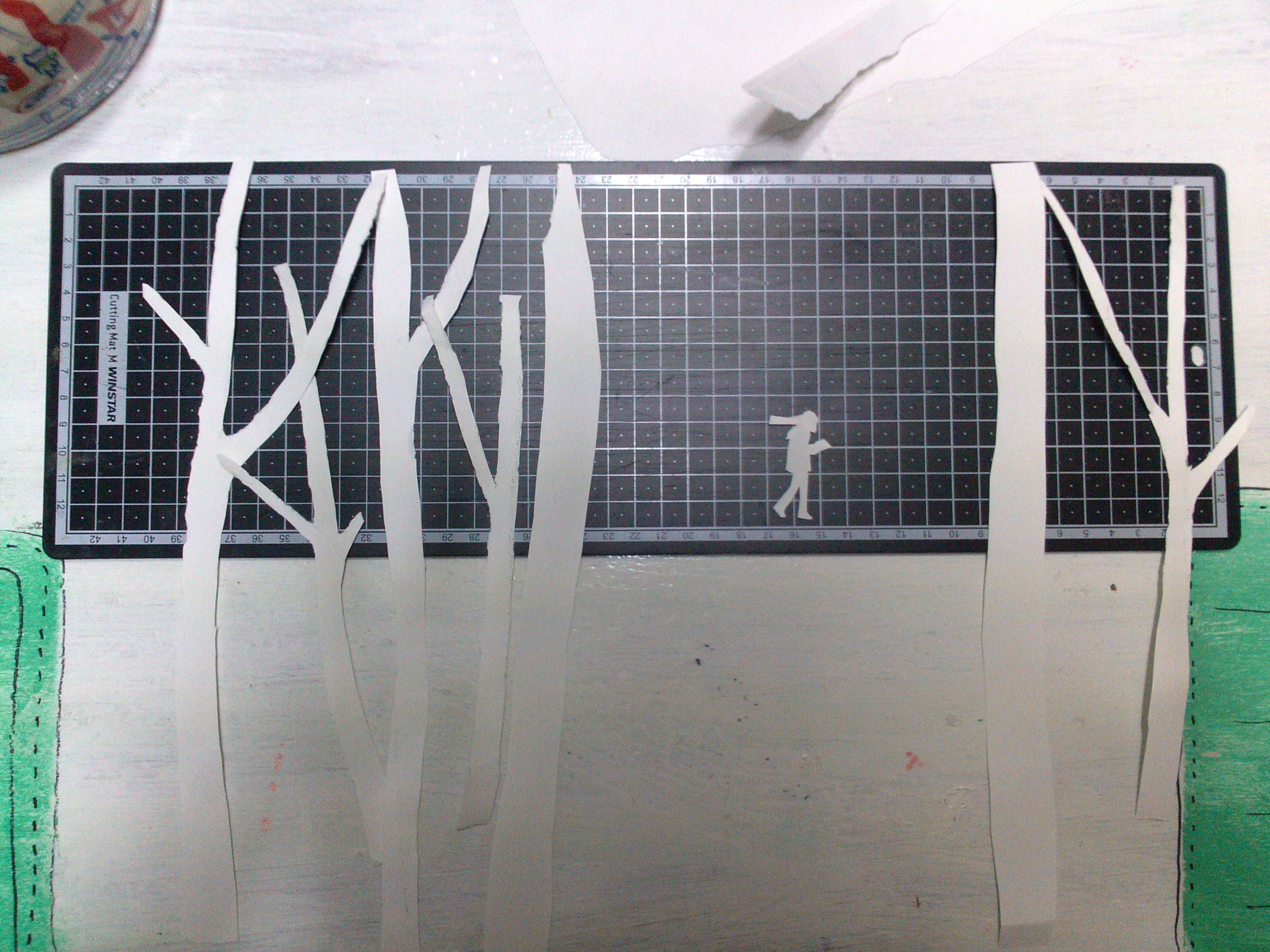 눈 산의 질감을 위해 종이를 몇겹 덧발라줌