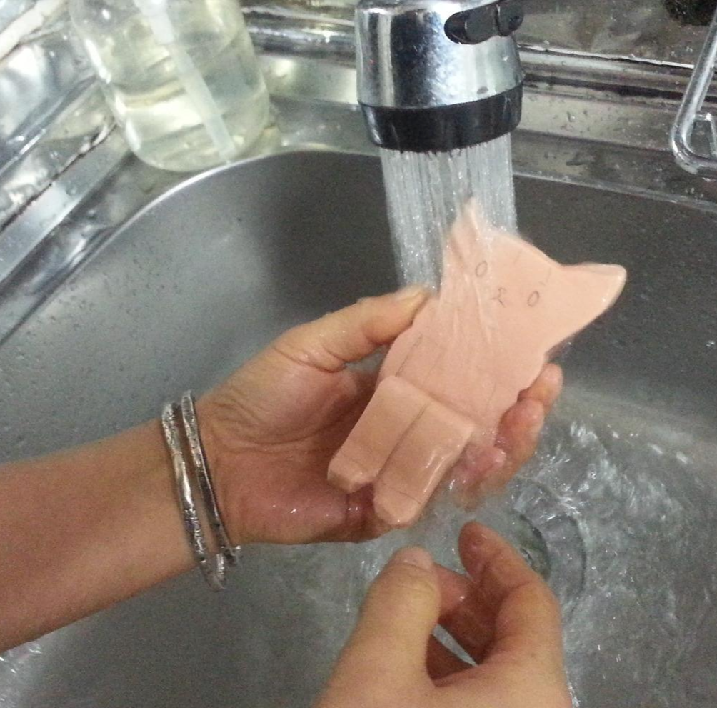 6. 샤포질이 끝난 초벌구이 인형들은 채색하기 전에 물로 씻어줍니다. 그래야 채색이 잘 됩니다.
